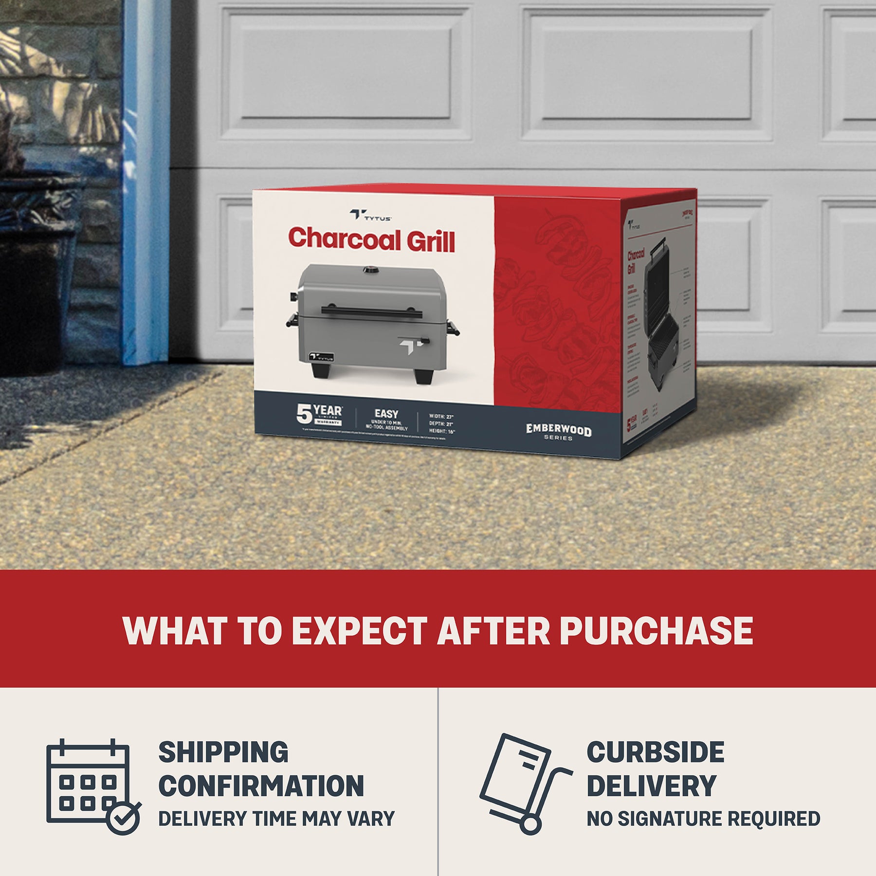 Impromptu get together in the backyard, meet the TYTUS Emberwood Charcoal Grill. The flexible tabletop design makes it equally at home on a patio table or atop the TYTUS Emberwood Grill & Prep Cart for extra prep space and storage. Swap a bulky setup for this compact grill that boasts 420 square inches of cooking space on porcelain-enameled steel grates that let you evenly heat and perfectly sear burgers, brats, bass, and bell peppers. Quick no-tool assembly and convenient, easy-access charcoal and grease catch trays make preparation and cleanup a breeze.